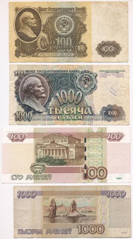 Beschreibung: Szovjetunió 1961. 100R + 1992. 1000R + Oroszország 1995. 1000R + 1997. 100R T:III,III-