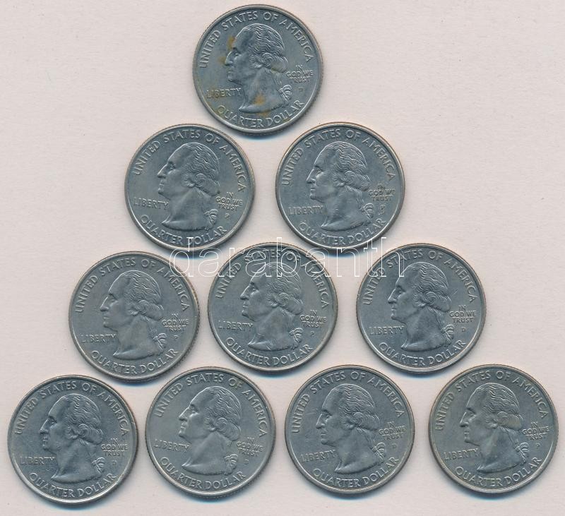 Amerikai Egyesült Államok 1999-2006. 25c Cu-Ni "50 állam" (1... https://www.darabanth.com/de/327-Fernauktion/327.0/Numismatik/Weltweit-Munzen~2000013/Amerikai-Egyesult-Allamok-1999-2006-25c-Cu-Ni-50-allam-10xklf-T2-USA-1999-2006-25-Centes-~II1820461