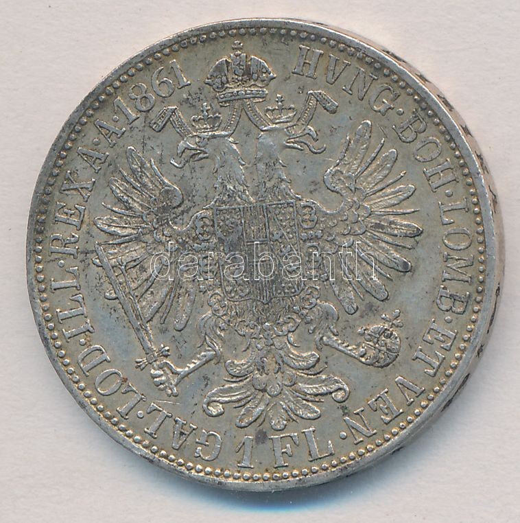 Ausztria 1861A 1Fl Ag "Ferenc József" T:2,2- kis ph., patina... https://www.darabanth.com/de/327-Fernauktion/327.0/Numismatik/Weltweit-Munzen~2000013/Ausztria-1861A-1Fl-Ag-Ferenc-Jozsef-T2-2-kis-ph-patina-Austria-1861A-1-Florin-Ag-Franz-Jose~II1821185