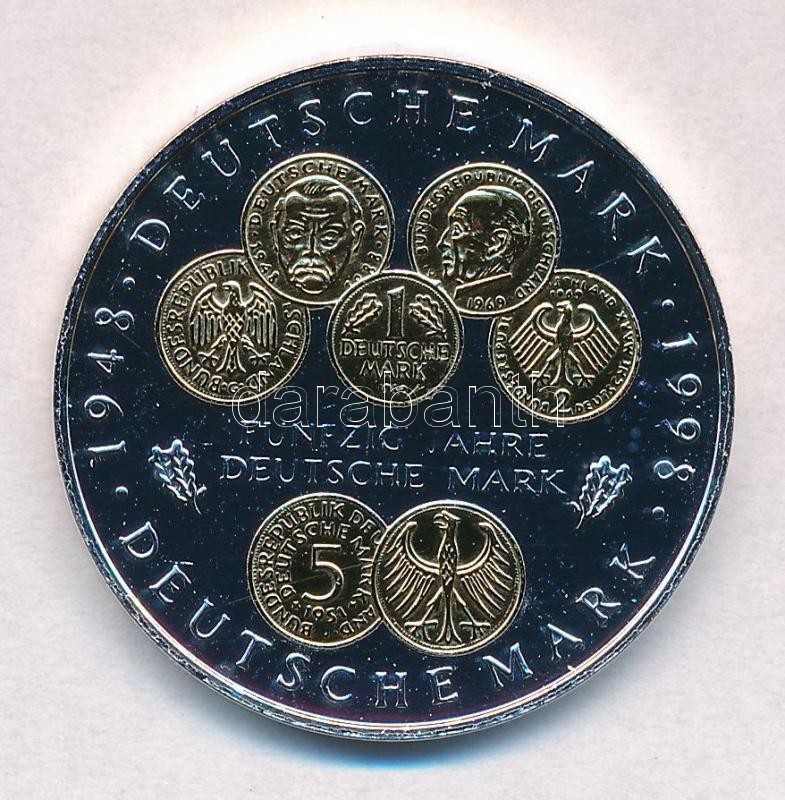Németország 1998F 10M Ag "50 éves a Német Márka" részben aranyozott T:2,2-