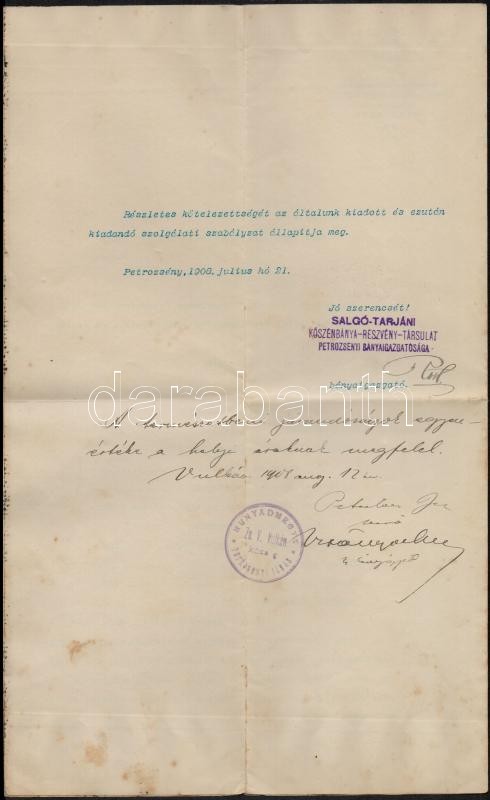 1908 Petrozsény, Salgó-Tarjáni Kőszénbánya-Részvény-Társulat Bányaigaz... https://www.darabanth.com/de/328-Fernauktion/328.0/Andere-Sammelgebiete/Dokument~1000017/1908-Petrozseny-Salgo-Tarjani-Koszenbanya-Reszveny-Tarsulat-Banyaigazgatosaga-altal-is~II1828670