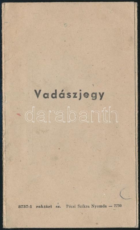 1951 Fényképes vadászjegy, okmánybélyegekkel https://www.darabanth.com/de/328-Fernauktion/328.0/Andere-Sammelgebiete/Dokument~1000017/1951-Fenykepes-vadaszjegy-okmanybelyegekkel~II1828608