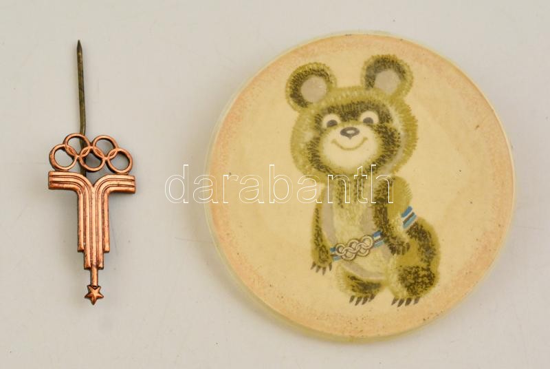 Beschreibung: 1980 Moszkvai olimpia 2 db kitűzője, műanyag és vörösréz