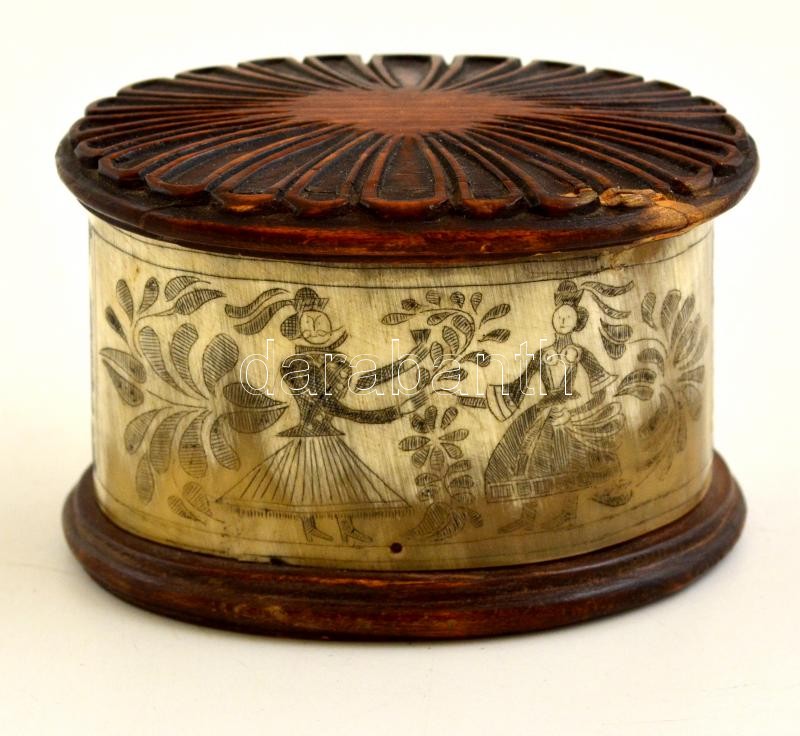 Díszes népi faragott dobozka, fa-csont, 10×7×6,5 cm https://www.darabanth.com/de/328-Fernauktion/328.0/Andere-Sammelgebiete/Flohmarkt~1000012/Diszes-nepi-faragott-dobozka-fa-csont-10C3977C3976-5-cm~II1826959
