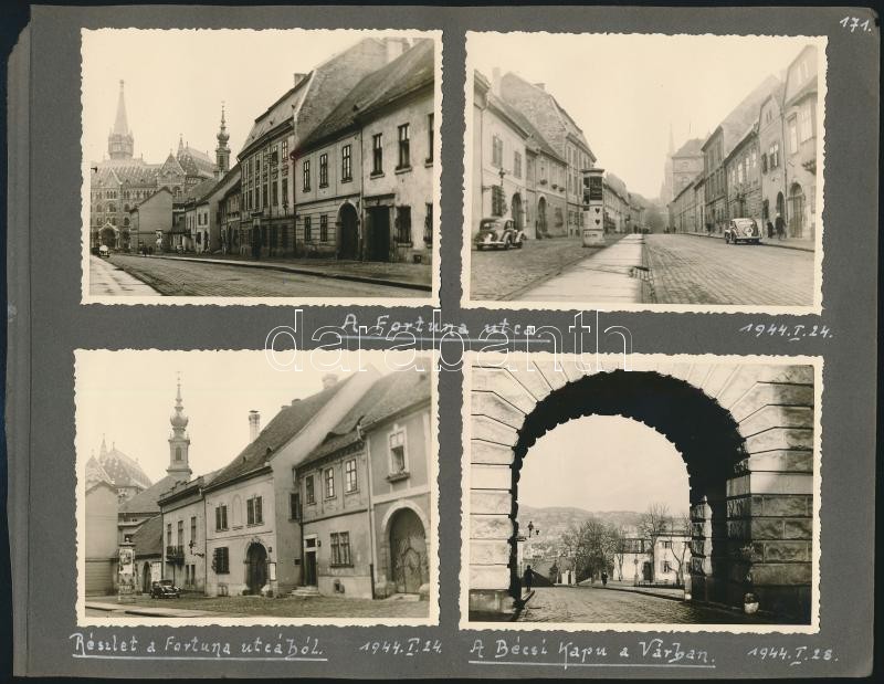 Beschreibung: 1944 Budapest I. a Fortuna utca a Várban. 4 db fotó 9x12 cm, a lap hátoldalán óbudai és hidegkúti képekkel