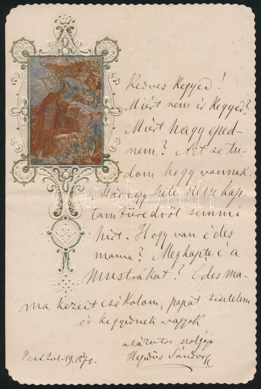 1870 Hegedűs Sándor (1847-1906) közgadász, miniszter, író saját kézzel... https://www.darabanth.com/de/328-Fernauktion/328.0/Andere-Sammelgebiete/Historische-Dokumenten-Handschriften~1000018/1870-Hegedus-Sandor-1847-1906-kozgadasz-miniszter-iro-sajat-kezzel-irt-szerelmes-levele~II1827786