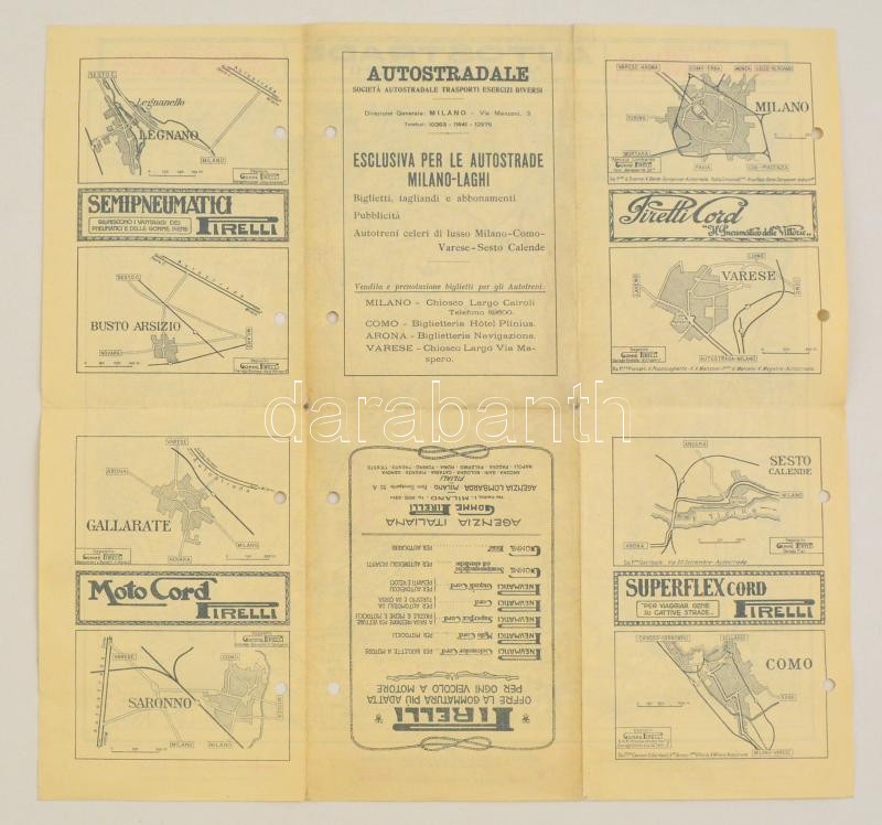 Milano-Laghi Pirelli autós térkép, 33x34 cm https://www.darabanth.com/de/328-Fernauktion/328.0/Andere-Sammelgebiete/Landkarten~1000029/Milano-Laghi-Pirelli-autos-terkep-33x34-cm~II1825569