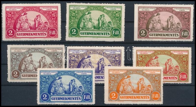 Beschreibung: 1928 8 db 2f Gyermekmentés levélzáró különböző színekben