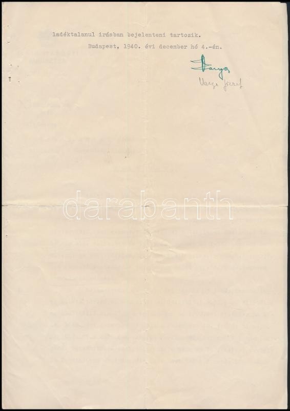 1940 Hivatalos irat Varga József iparügyi miniszter aláírásával https://www.darabanth.com/de/328-Fernauktion/328.0/Andere-Sammelgebiete/Signatur~1000019/1940-Hivatalos-irat-Varga-Jozsef-iparugyi-miniszter-alairasaval~II1827505