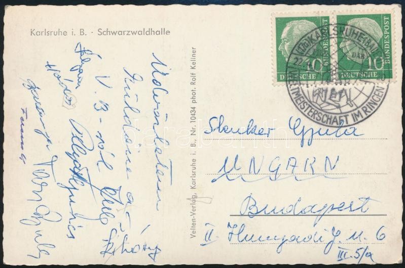 1954 Magyar birkózók által aláírt képeslap a Karlsruhei világbajnokság... https://www.darabanth.com/de/328-Fernauktion/328.0/Andere-Sammelgebiete/Signatur~1000019/1954-Magyar-birkozok-altal-alairt-kepeslap-a-Karlsruhei-vilagbajnoksagrol-Polyak-Hodos-~II1828877