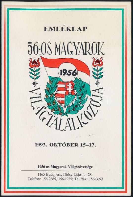 Beschreibung: 1993 Az 56-os magyarok világtalálkozójára készített emléklap, rajta sok résztvevő aláírásával