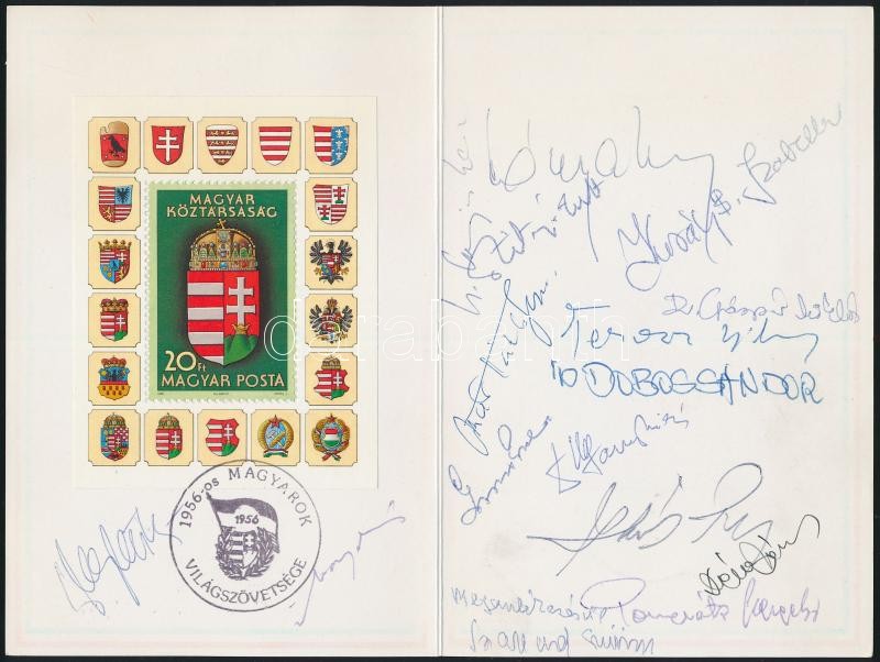 1993 Az 56-os magyarok világtalálkozójára készített emléklap, rajta so... https://www.darabanth.com/de/328-Fernauktion/328.0/Andere-Sammelgebiete/Signatur~1000019/1993-Az-56-os-magyarok-vilagtalalkozojara-keszitett-emleklap-rajta-sok-resztvevo-alaira~II1826894