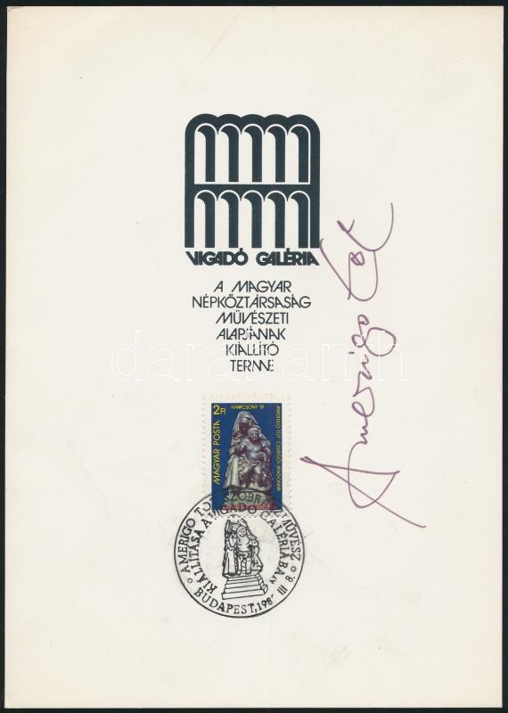 Beschreibung: Amerigo Tot(1909-1984): aláírása saját kiállítási emléklapján alkalmi bélyegzéssel