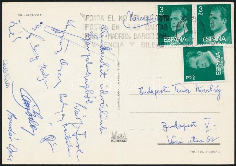 Beschreibung: Magyar teniszezők aláírásai spanyol levelezőlapon (Várfi Imre, Bécy Ibolya, stb.)