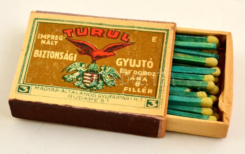 cca 1930 Turul impregnált biztonsági gyújtó - régi gyufásdoboz, tartal... https://www.darabanth.com/de/328-Fernauktion/328.0/Andere-Sammelgebiete/Streichholzer-Etikett~1000023/cca-1930-Turul-impregnalt-biztonsagi-gyujto-regi-gyufasdoboz-tartalommal~II1831797