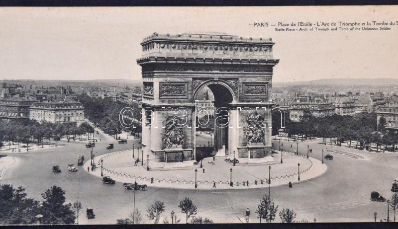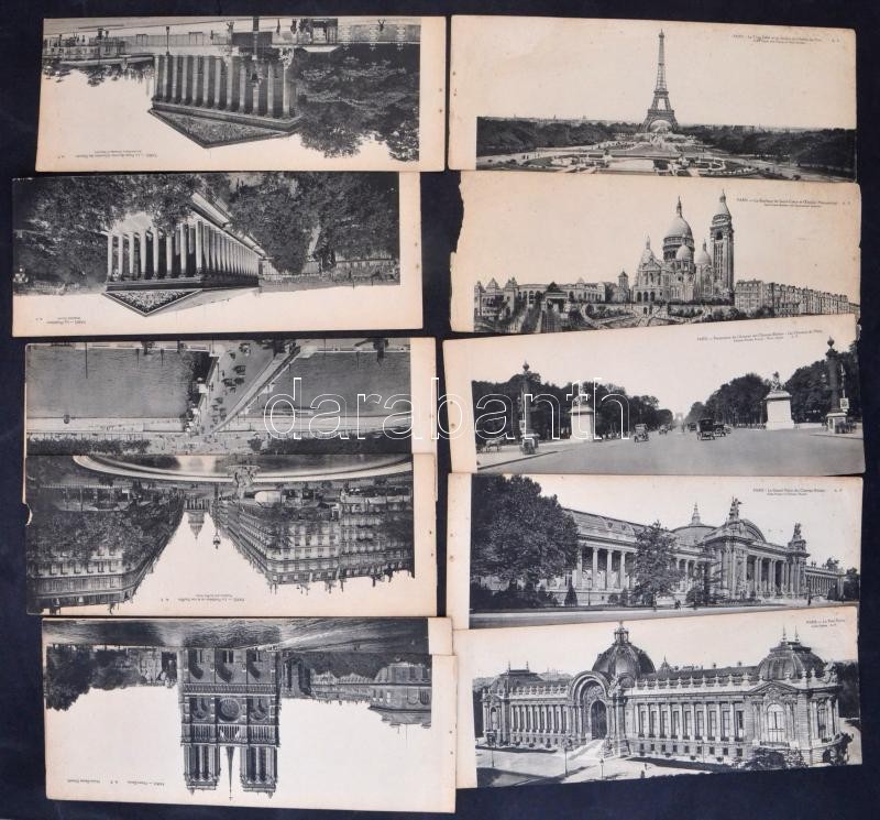 Paris - 19 db régi nagyalakú francia lap, sérült állapotban, a lapok bal oldalán kis lyukasztások vagy szakadások / 19 db big-sized (30 cm x 11,5 cm) town-view cards of Paris in the early 1900s, damaged condition (most of the cards have small punch holes on the left side)
