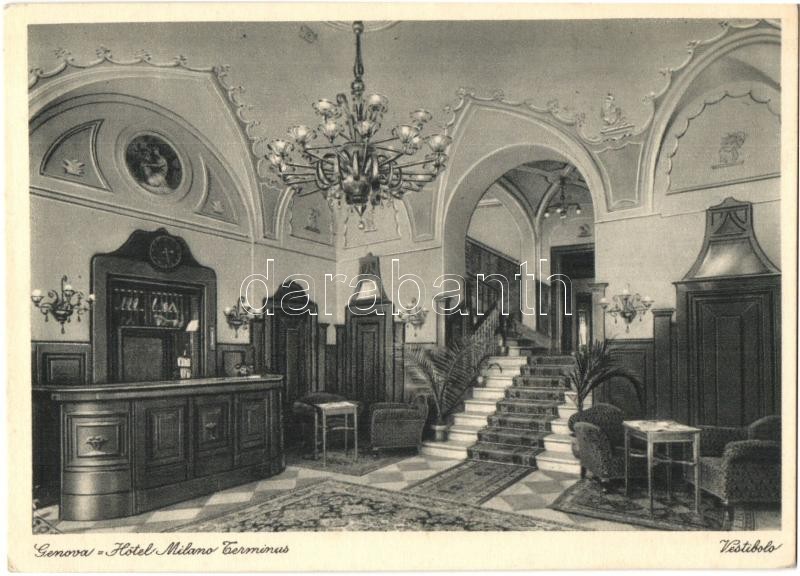 Genova, Hotel Milano Terminus / hall (EK) https://www.darabanth.com/de/328-Fernauktion/328.0/Ansichtskarten/Italien~2000045/Genova-Hotel-Milano-Terminus-hall-EK~II1829479