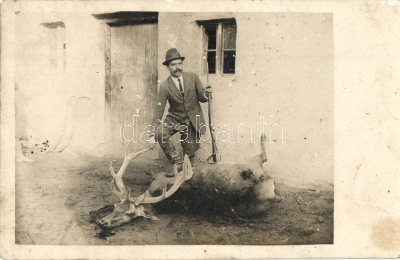Hunter with hunted deer. photo (fl) https://www.darabanth.com/de/328-Fernauktion/328.0/Ansichtskarten/Jagd~2000090/Hunter-with-hunted-deer-photo-fl~II1832406