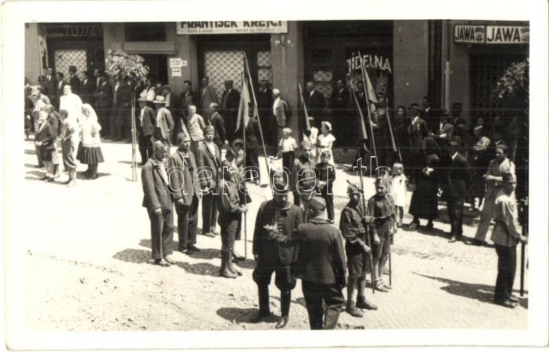 Munkács, Mukacheve, Mukacevo; Orosz felvonulás (?), háttérben Jawa, Tu... https://www.darabanth.com/de/328-Fernauktion/328.0/Ansichtskarten/Karpatenukraine~2000008/Munkacs-Mukacheve-Mukacevo-Orosz-felvonulas-hatterben-Jawa-Tussay-Jidelna-Krejci-uzl~II1827665