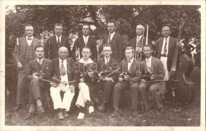 Music band, group photo (fl) https://www.darabanth.com/de/328-Fernauktion/328.0/Ansichtskarten/Musik-Musikanten~2000093/Music-band-group-photo-fl~II1832408