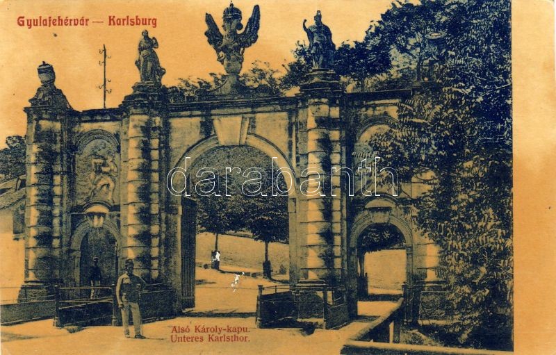 Gyulafehérvár, Karlsburg, Alba Iulia; Alsó-Károly kapu / castle gate ... https://www.darabanth.com/de/328-Fernauktion/328.0/Ansichtskarten/Siebenburgen~2000006/Gyulafehervar-Karlsburg-Alba-Iulia-Also-Karoly-kapu-castle-gate-fl~II1828978