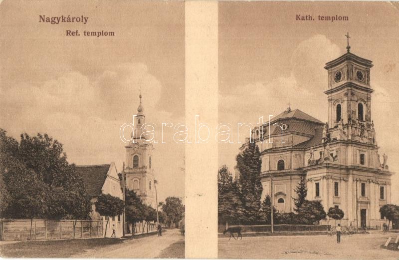 Nagykároly, Carei; Református templom, Római katolikus templom. Gál Sa... https://www.darabanth.com/de/328-Fernauktion/328.0/Ansichtskarten/Siebenburgen~2000006/Nagykaroly-Carei-Reformatus-templom-Romai-katolikus-templom-Gal-Samu-kiadasa-Calvinist-ch~II1829872