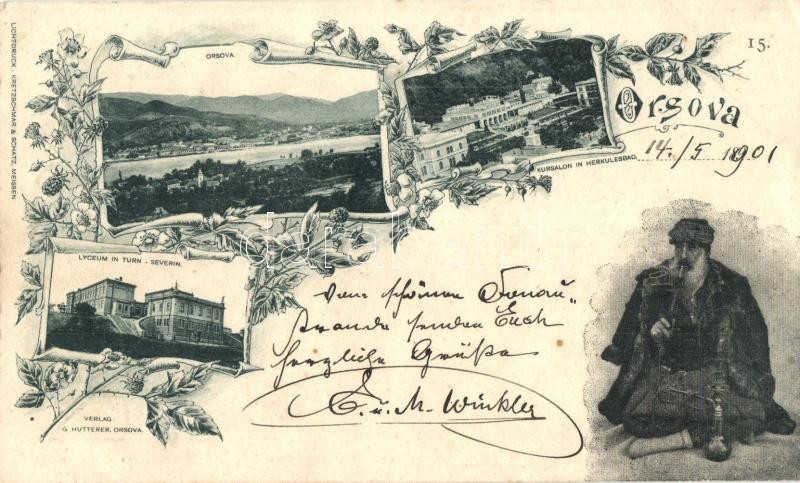 Orsova, Kursalon in Herkulesbad, Lyceum in Turnu Severin / herkulesfürdői fürdőház, szörényvári líceum, Bego Mustafa / spa, school. Floral, Art Nouveau