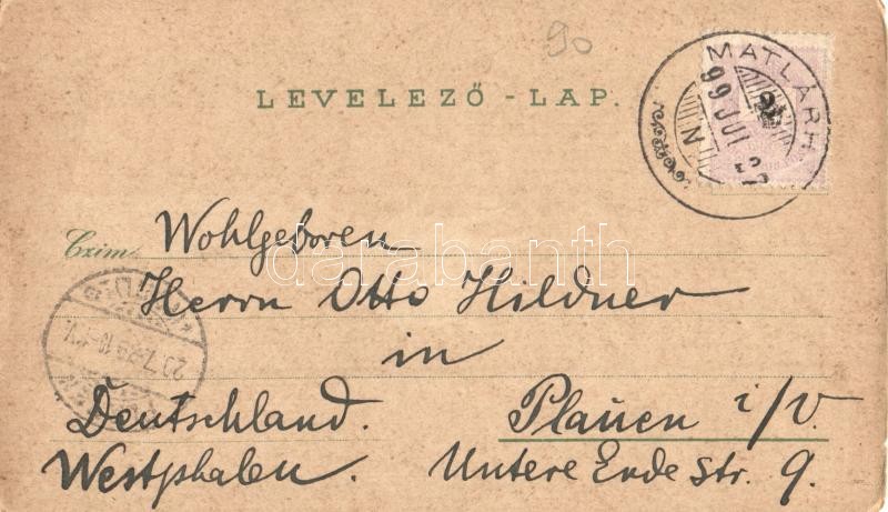 1899 Tátralomnic, Tatranská Lomnica; Lomnici csúcs, szanatórium, Kuszmann Gyula áruháza Késmárkról, bazár, vasútállomás, gőzmozdony, szálloda. Schwidernoch Károly 1833. sz. / Lomnicky Stít mountain peak, sanatorium, shop, railway station, locomotive, hotel. Art Nouveau, floral, litho (EM)