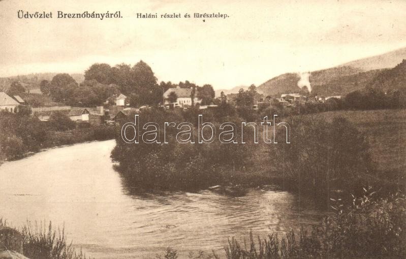 Beschreibung: Breznóbánya, Brezno nad Hronom; Haláni részlet és a fűrésztelep. Kiadja a Fogyasztási Szövetkezet / sawmill (EK)