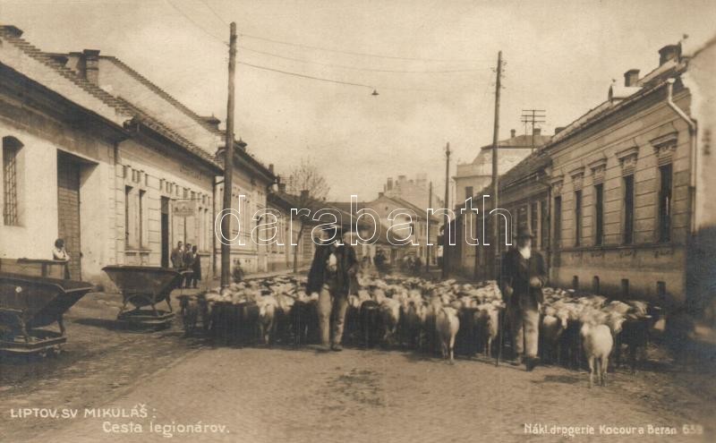 Liptószentmiklós, Liptovsky Mikulas; utcakép, juhokat terelő juhászokk... https://www.darabanth.com/de/328-Fernauktion/328.0/Ansichtskarten/Slowakei~2000007/Liptoszentmiklos-Liptovsky-Mikulas-utcakep-juhokat-terelo-juhaszokkal-Cesta-legionarov-~II1826341