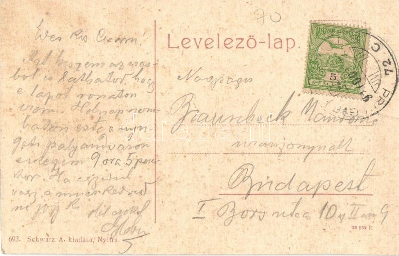 Beschreibung: Nyitra, Nitra; Tóth Vilmos utca, Weisz Lipót üzlete. Schwarz A. kiadása 693. / street view, shop (EK)