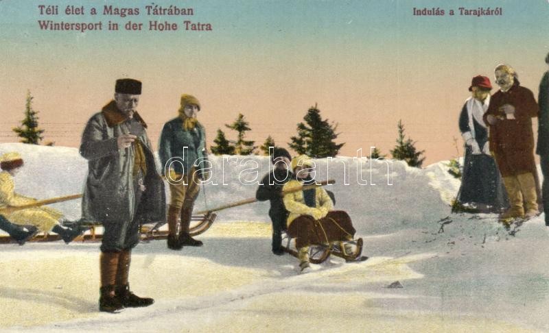 Tátra, Tatry; Bobszán indulása a Tarajkáról, téli élet a Magas Tátrában, téli sport, szánkó / Wintersport in der Hohe Tatra / bobsleigh launches from Hrebienok, bobsled, sledding, winter sport