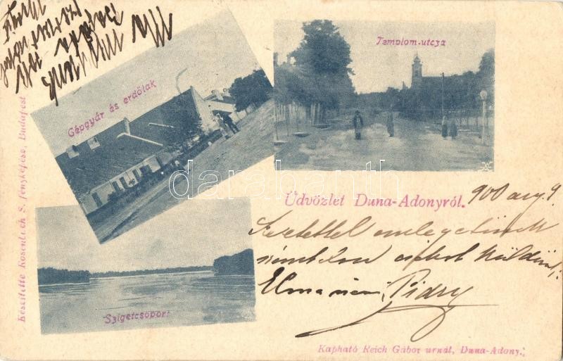 1900 Adony, Duna-Adony; Gépgyár és erdőlak, Templom utca, Szigetcsopor... https://www.darabanth.com/de/328-Fernauktion/328.0/Ansichtskarten/Ungarn~2000005/1900-Adony-Duna-Adony-Gepgyar-es-erdolak-Templom-utca-Szigetcsoport-Keszitette-Rosenbach-~II1830864