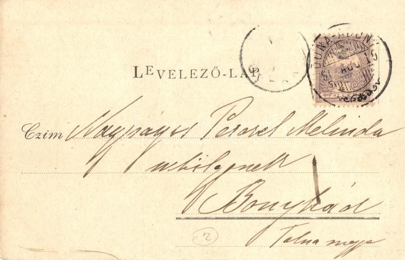 Beschreibung: 1900 Adony, Duna-Adony; Gépgyár és erdőlak, Templom utca, Szigetcsoport. Készítette Rosenbach S. fényképész, kapható Reich Gábor úrnál (EK)
