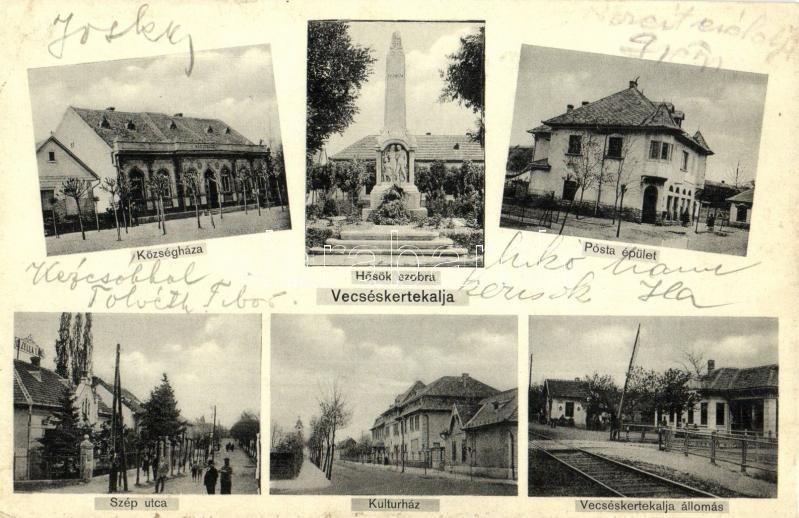 Beschreibung: Vecséskertekalja, Községháza, Posta épület, Szép utca, Kultúrház, vasútállomás, Gizella lak