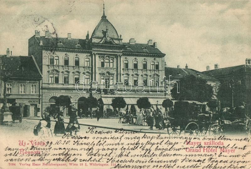 1899 Újvidék, Neusatz, Novi Sad; Mayer szálloda, Mayer Imre sörcsarnoka, piaci árusok. Kiadja Hans Nachbargauer / Grand Hotel Mayer, beer hall, inn, market vendors (EK)