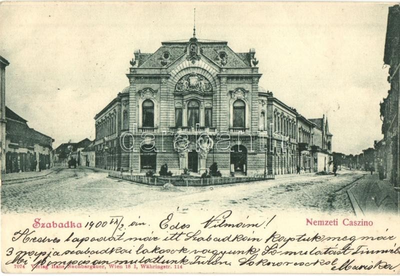 1900 Szabadka, Subotica; Nemzeti Casino (kaszinó). Kiadja Hans Nachbar... https://www.darabanth.com/de/328-Fernauktion/328.0/Ansichtskarten/Vojvodina~2000010/1900-Szabadka-Subotica-Nemzeti-Casino-kaszino-Kiadja-Hans-Nachbargauer-casino-EK~II1829170
