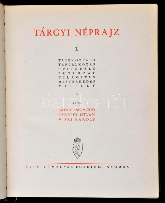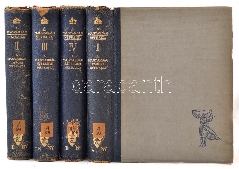 Bátky Zsigmond - Györffy István - Viski Károly: A magyar néprajza. 1-4. kötet. Bp., [1941], Királyi Magyar Egyetemi Nyomda. Kopott félvászon kötésben, egyébként jó állapotban.