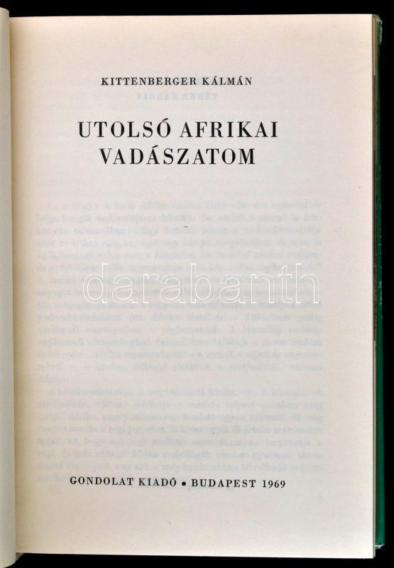 Kittenberger Kálmán: Utolsó afrikai vadászatom. Bp., 1969, Gondolat. ... https://www.darabanth.com/de/328-Fernauktion/328.0/Bucher/Bucher-Jagd~1500009/Kittenberger-Kalman-Utolso-afrikai-vadaszatom-Bp-1969-Gondolat-Elso-kiadas-Fekete-fehC3~II1831481