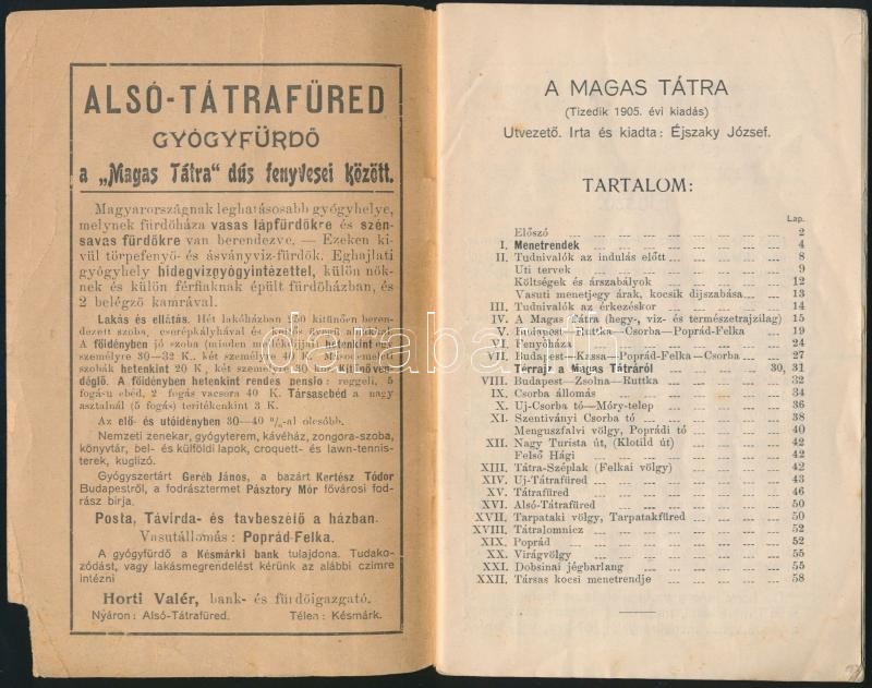 Éjszaky József: A Magas-Tátra. Útvezető menetrenddel. 1905. Kiadói pap... https://www.darabanth.com/de/328-Fernauktion/328.0/Bucher/Bucher-Reise-und-Ortgeschichte~1500001/Ejszaky-Jozsef-A-Magas-Tatra-Utvezeto-menetrenddel-1905-Kiadoi-papirkotes-kopottas-al~II1828746