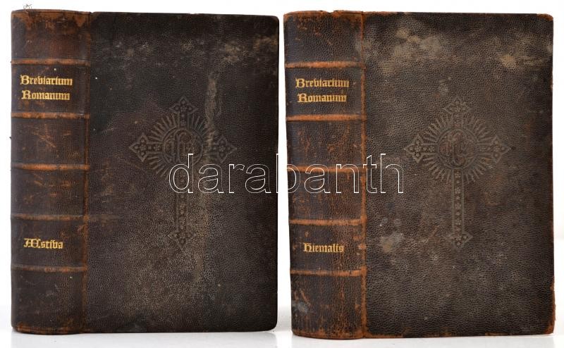 Breviarium Romanum. Pars Hiemalis. Pars Aestiva. Tornaci Nerviorum (Torunai), 1890,Societatis S. Joannis Evangelistae. Latin nyelven. Korabeli aranyozott gerincű egészbőr-kötés, kissé kopott borítóval.