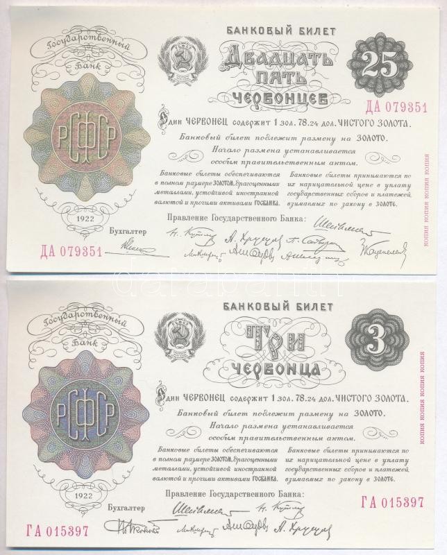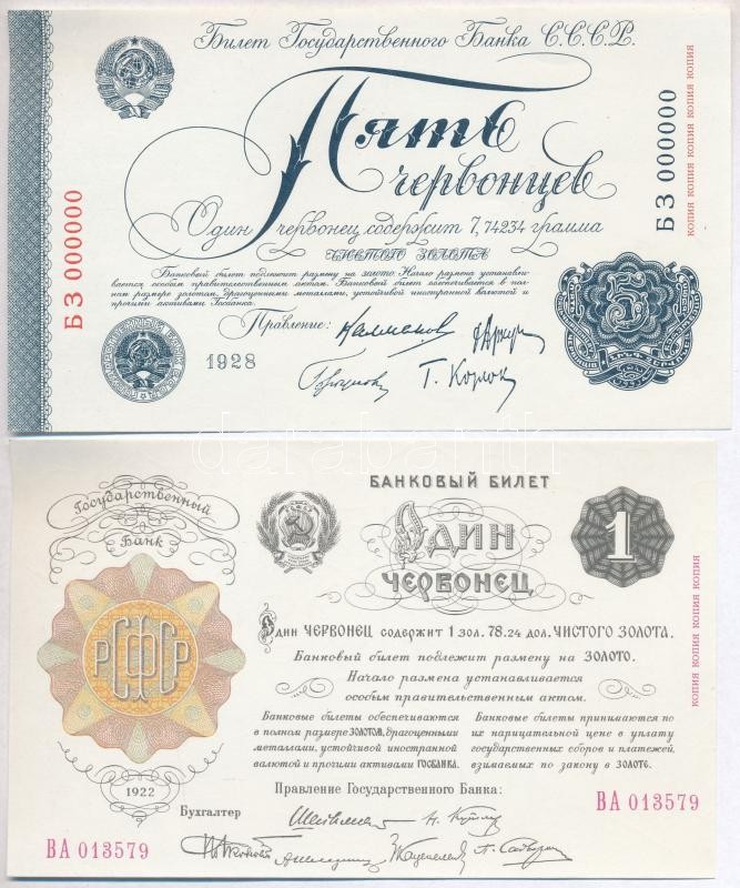 Szocialista Szövetségi Szovjet Köztársaság / Szovjetunió 1922-1928. 5db-os vegyes bankjegy replika tétel T:I,I-