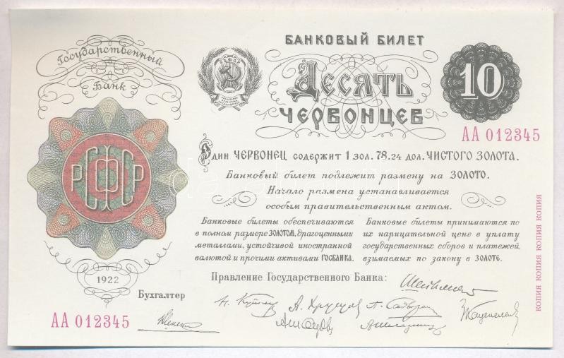 Russian Socialist Federated Soviet Republic / Soviet Union 1922-1928. 5pcs of various banknotes replicas C:UNC,AU