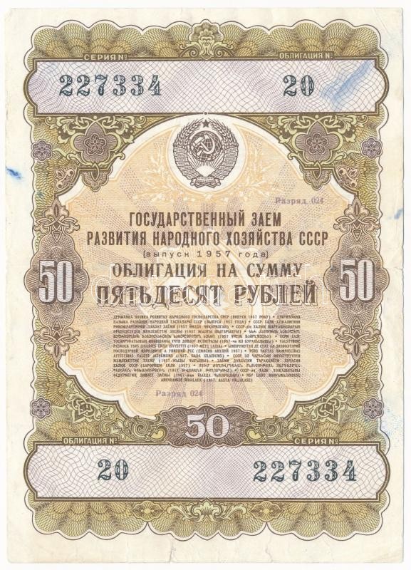 Soviet Union 1957. Lot... https://www.darabanth.com/de/328-Fernauktion/328.0/Numismatik/Aktien-und-Tickets~2500004/Szovjetunio-1957-Sorsjegy-50R-ertekben-TIII--Soviet-Union-1957-Lottery-ticket-about-50-Rubles~II1828199