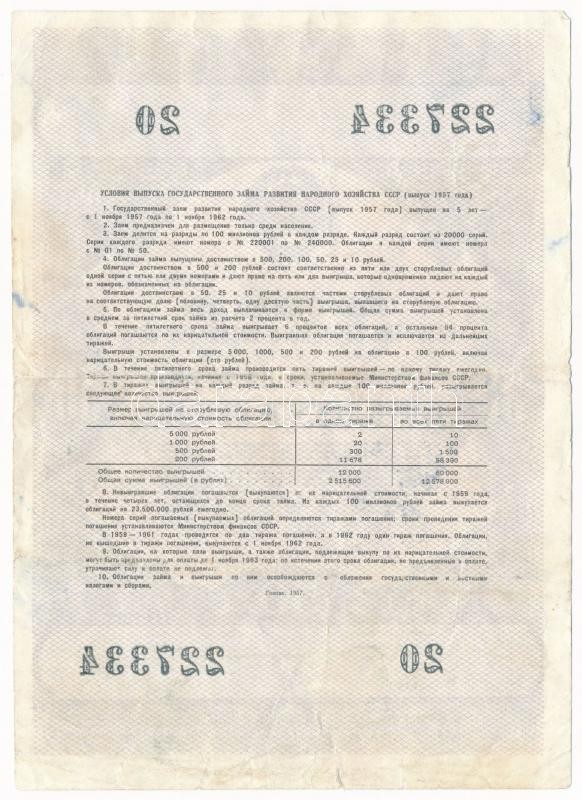 Szovjetunió 1957. Sorsjegy 50R értékben T:III-