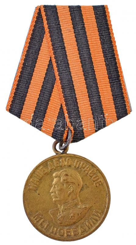 Szovjetunió 1945. "A Németország felett aratott győzelemért az 1941-1945-ös Nagy Honvédő Háborúban" sárgaréz kitüntetés mellszalaggal T:2