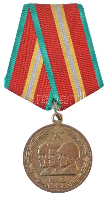 Szovjetunió 1988. "70 éves a Szovjet Fegyveres Erők" sárgaréz kitüntetés mellszalagon T:1-