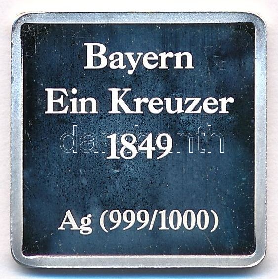 Németország DN "Bayern Ein Kreuzer 1849" jelzett Ag bélyegérem (6,04g/0.999/24x21mm) T:PP fo.
