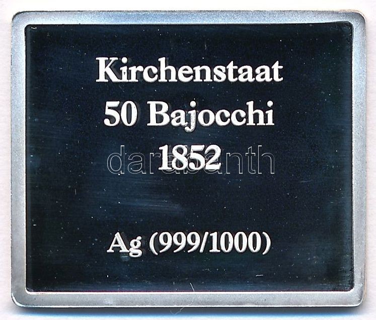 Beschreibung: Németország DN "Kirchenstaat 50 Bajocchi 1852" jelzett Ag bélyegérem (8,05g/0.999/24x21mm) T:PP fo.