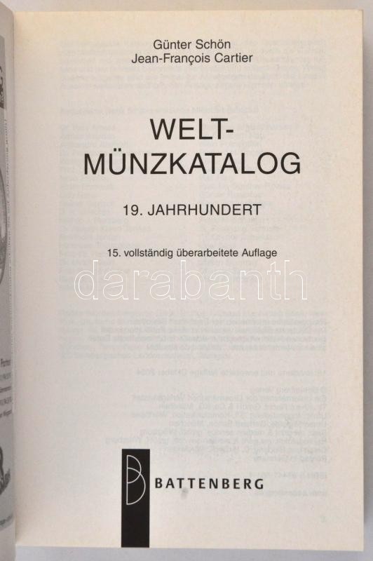 Günter Schön - Jean-Francois Cartier: Welt Münzkatalog - 19. Jahrhunde... https://www.darabanth.com/de/328-Fernauktion/328.0/Numismatik/Numismatische-Literatur~2500002/Gunter-Schon-Jean-Francois-Cartier-Welt-Munzkatalog-19-Jahrhundert-15-Auflage-Battenberg~II1829253